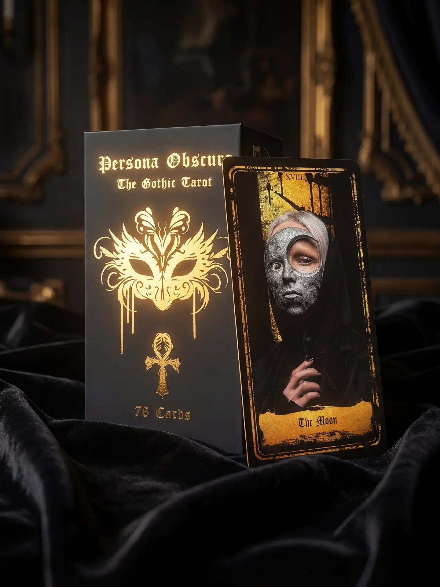 Persona Obscura (Tarot Rider–Waite, 78 Cards, Velvet & Gold Finish, Gilded Edges, Anti‑Scratch Cardstock)