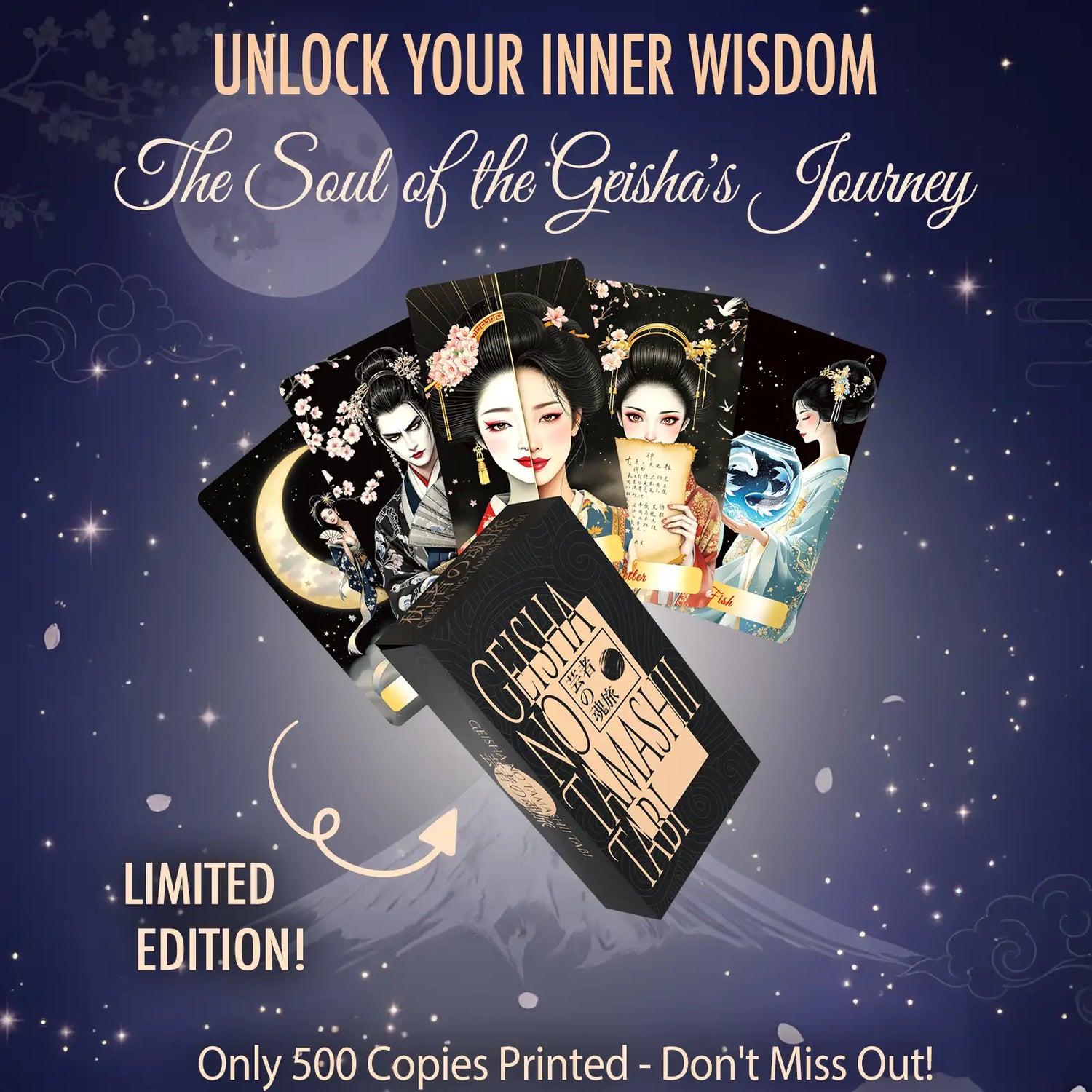 Tabi no Kokoro (Tarot Rider–Waite, 78 Cards, Black EDGE, Matte Finish, Pink Metallic Foil)